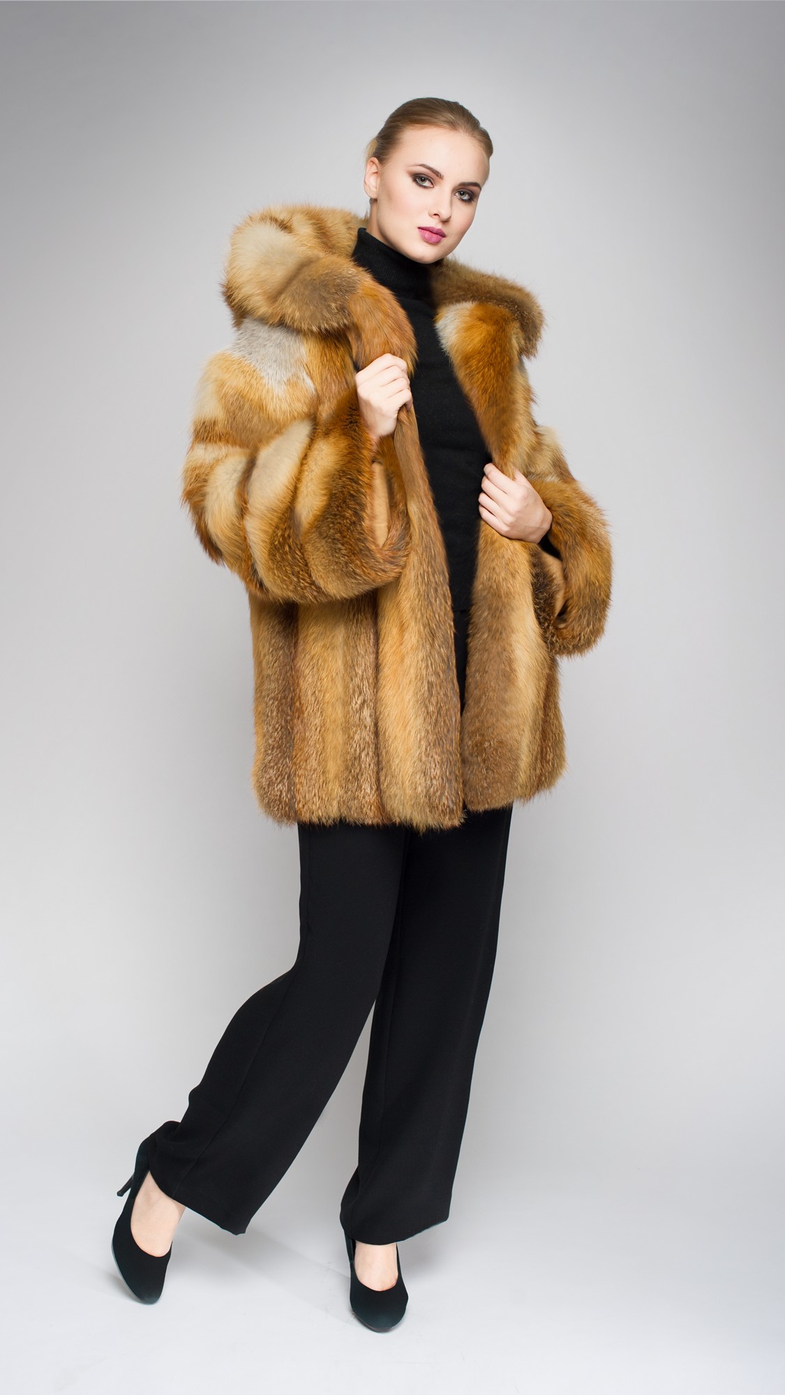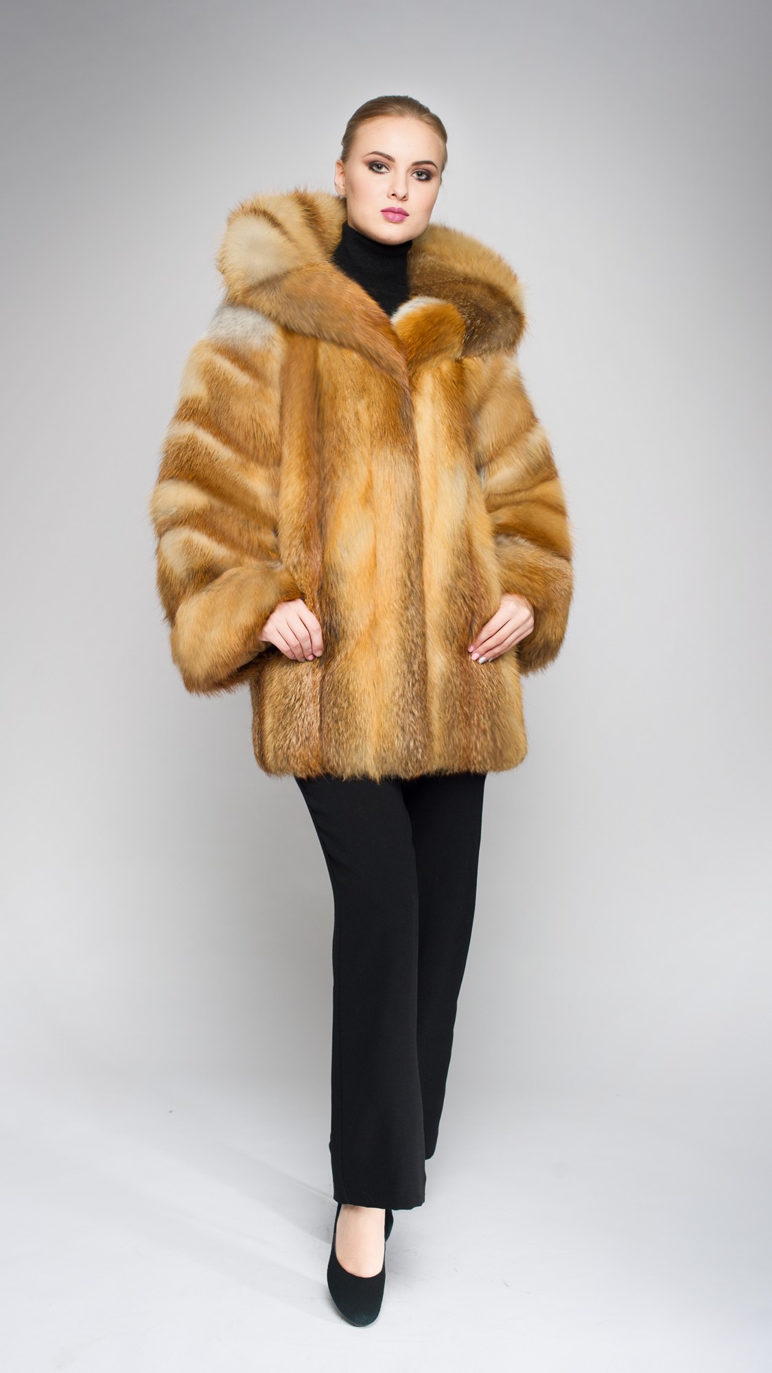 Шуба из меха лисы