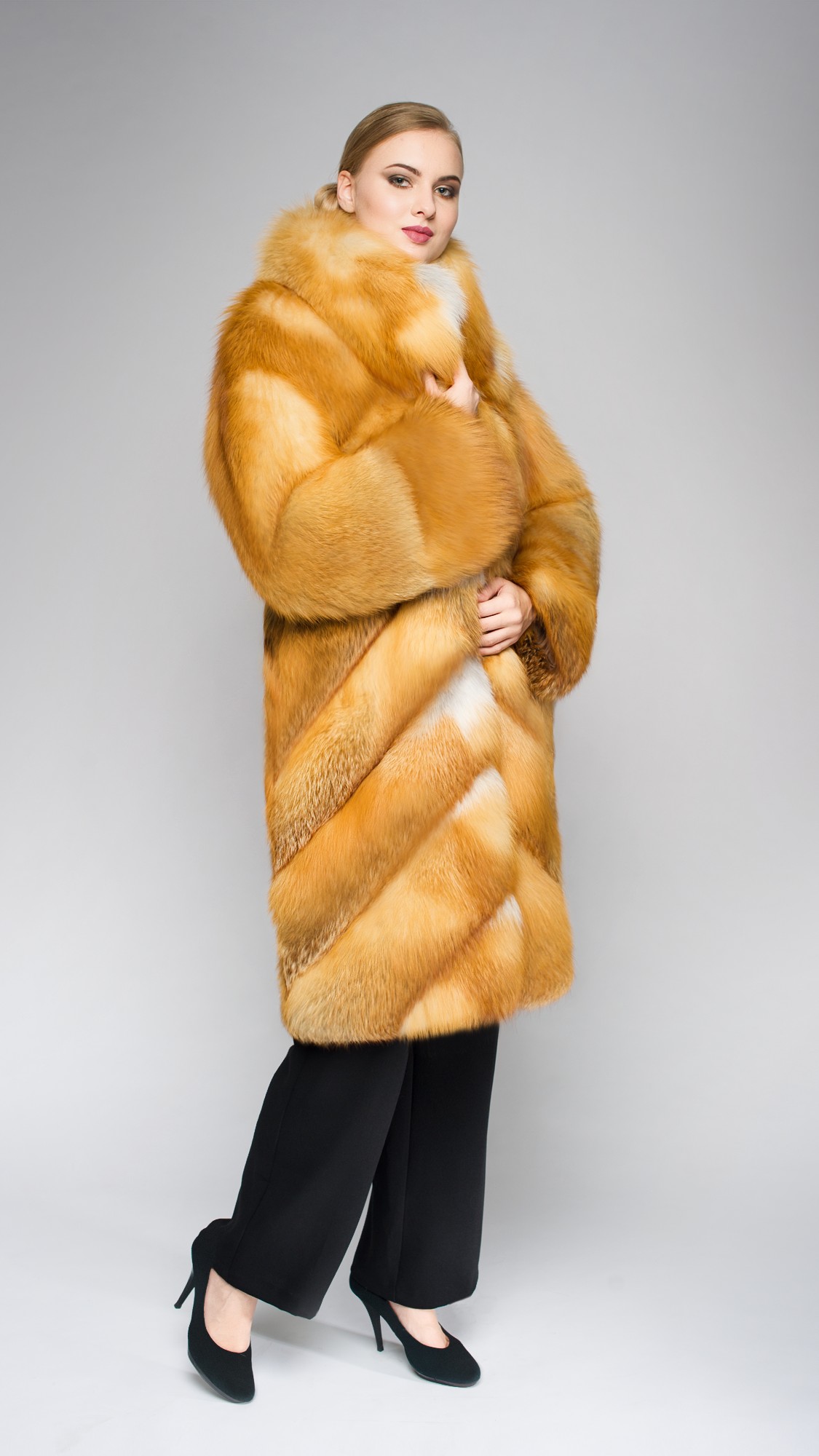 Шуба из огненной лисы подойдет стройным модницам — имейте ввиду, что пушистый мех и прямой крой немного добавят объем. Сочетайте такую шубу с женственной одеждой и обувью на каблуке.