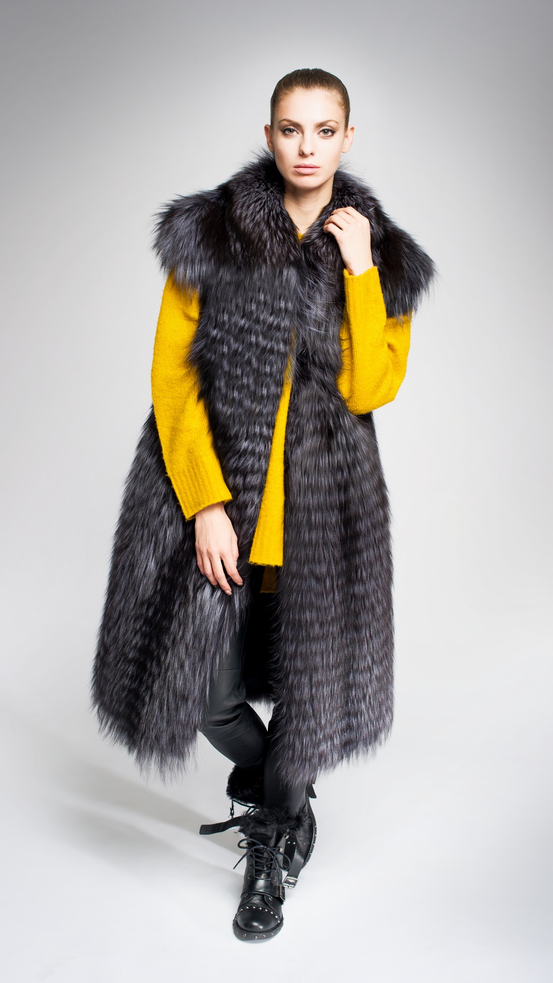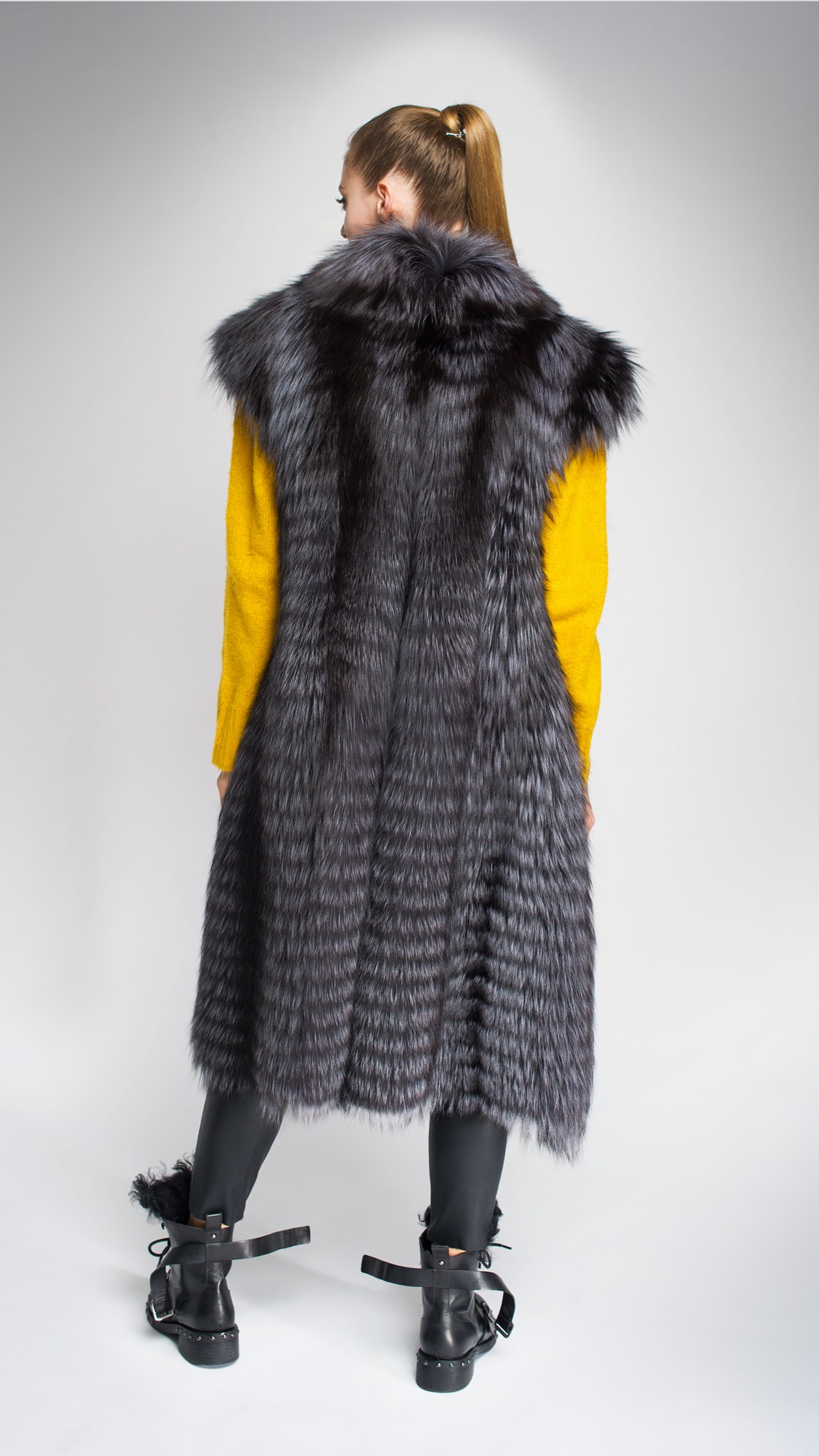 Жилет из меха чернобурой лисы