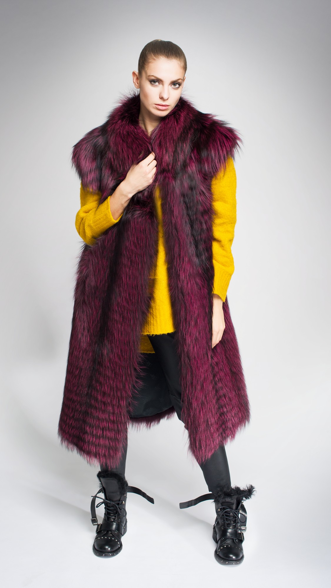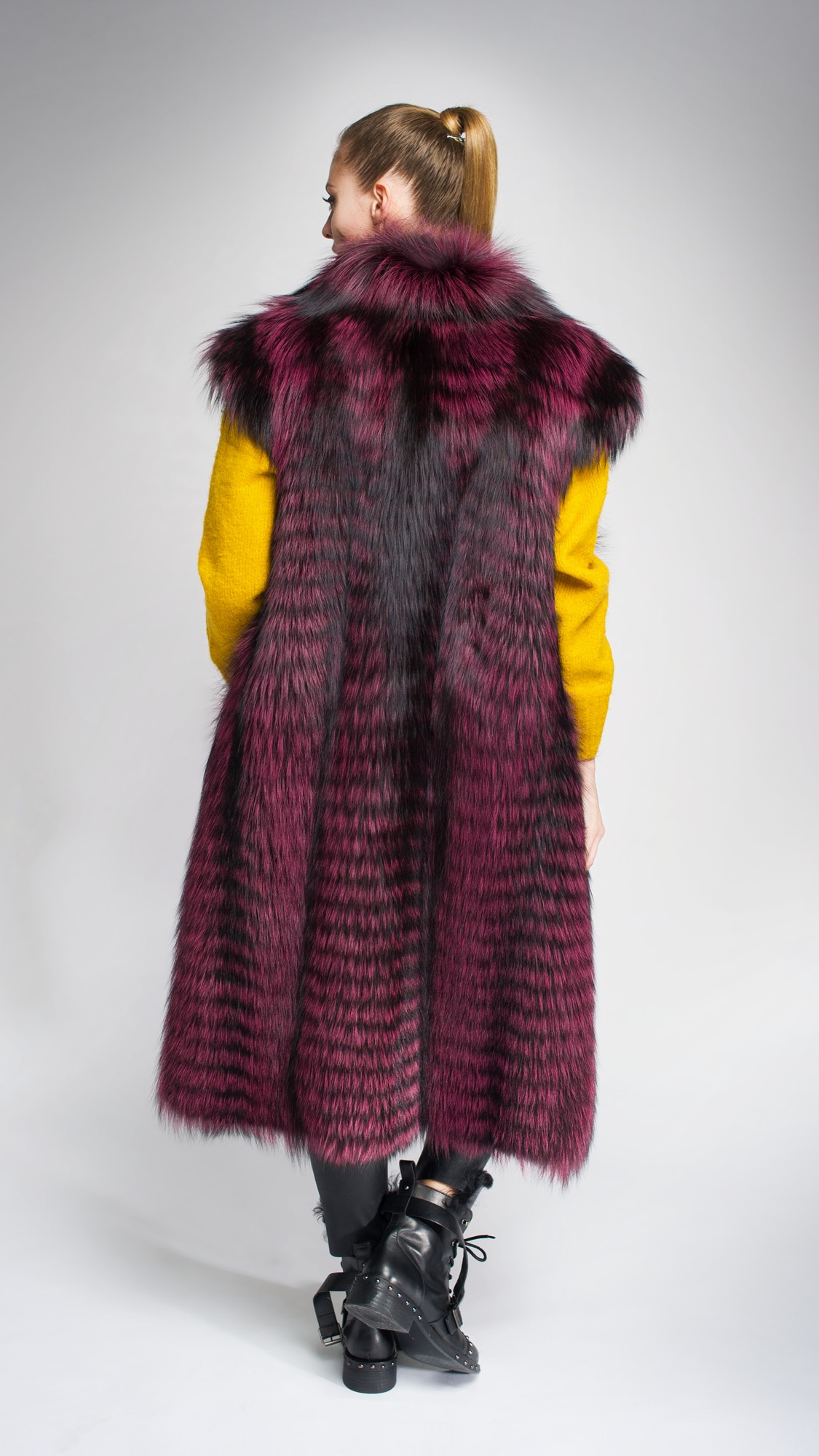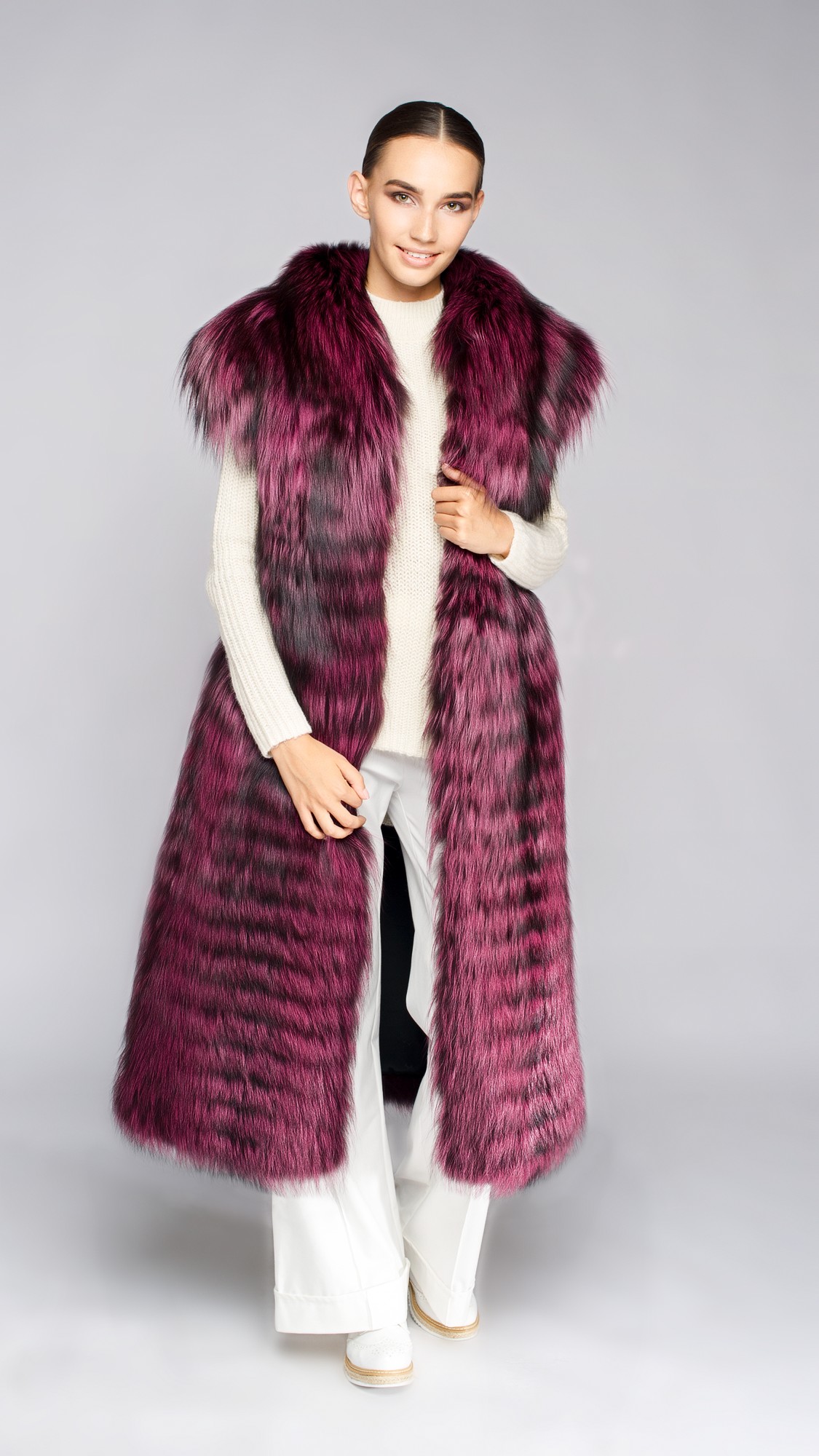 Яркий жилет из чернобурой лисы идеально подойдет на позднюю осень и раннюю весну. Сочетайте его с подобными вещами, как на фото, или смело надевайте каблуки и самое нарядное вечернее платье.