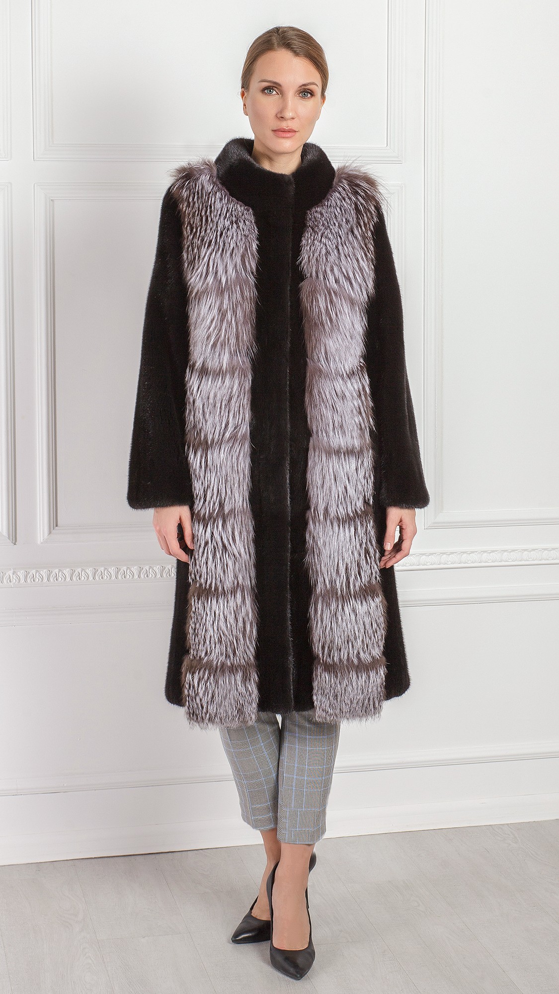 Черное норковое пальто с отделкой из чернобурой лисы. Это тот случай, когда мы решили разбавить привычную классику объемным пушистым мехом. Такая шуба легко станет любимым элементом вашего зимнего гардероба.