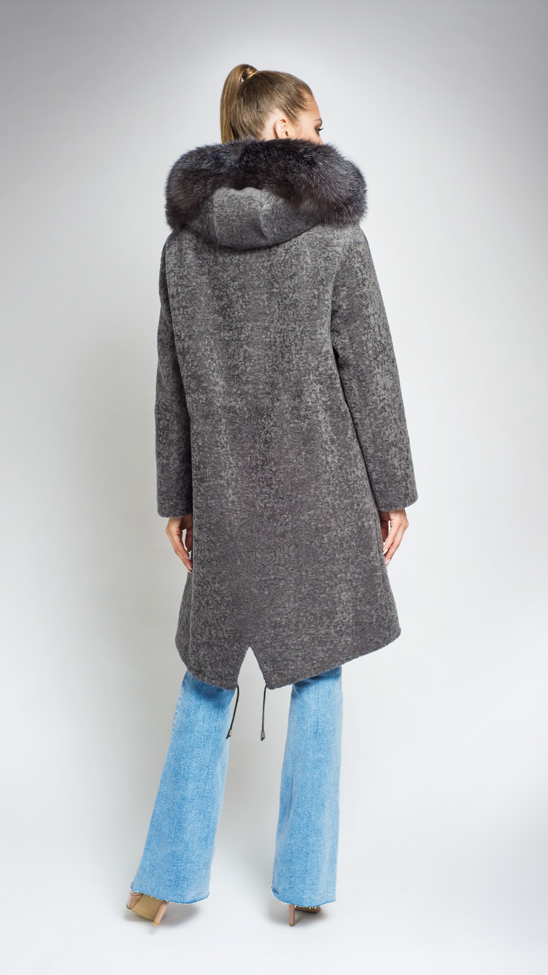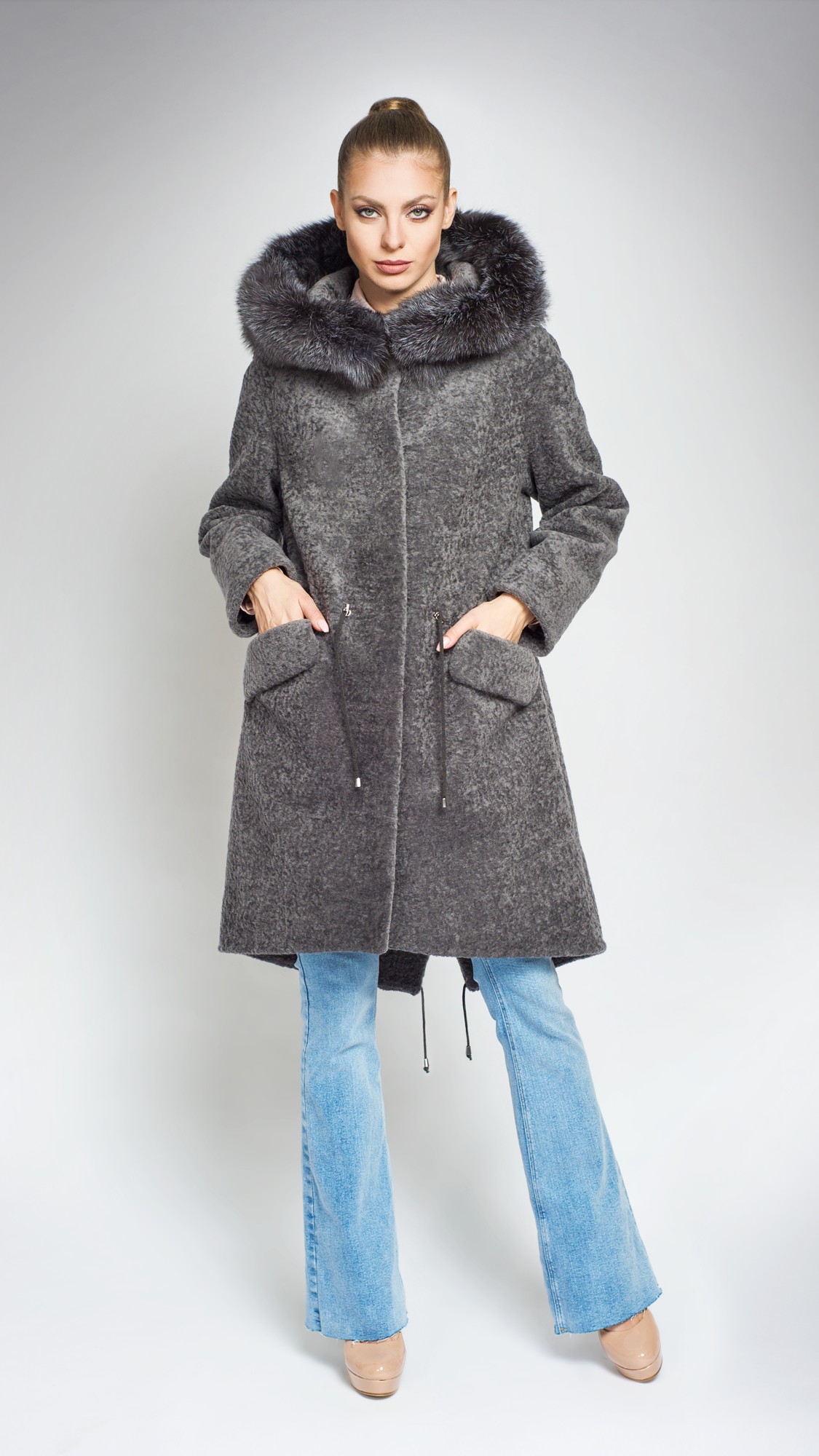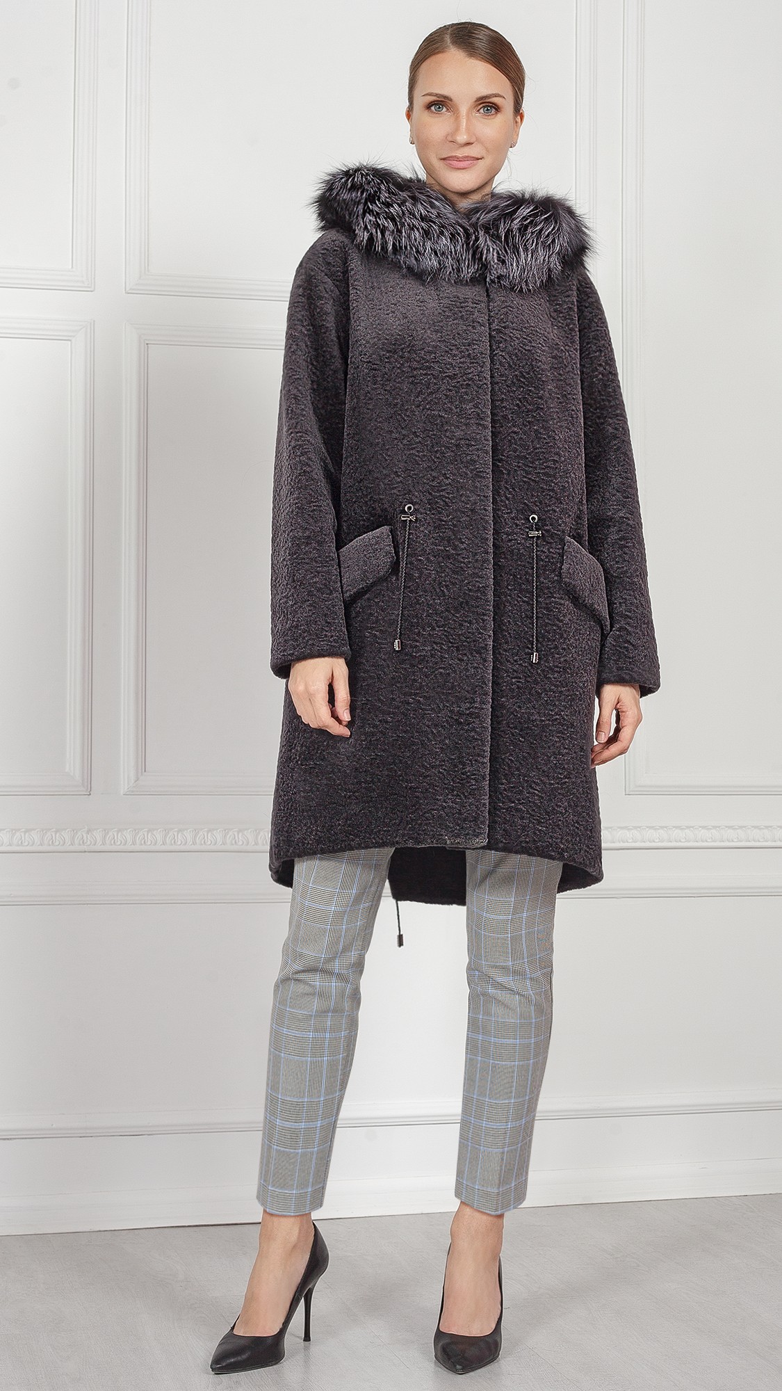 Пальто из шерсти, отделка лиса