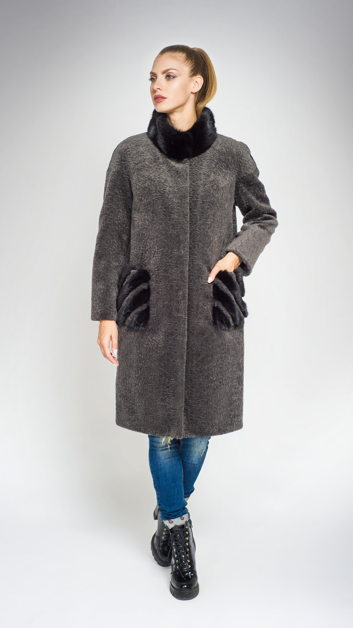 Пальто из шерсти, отделка норка