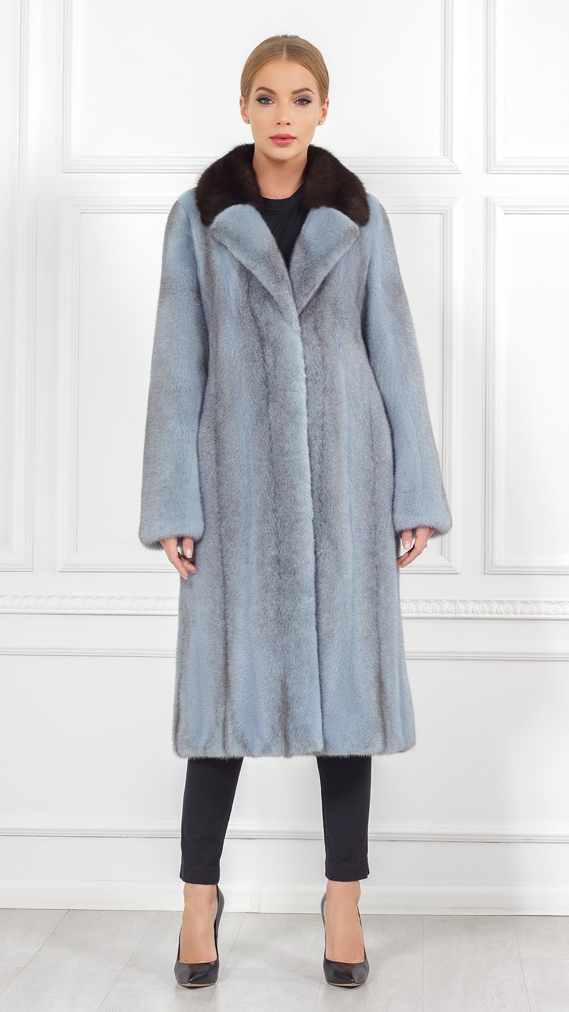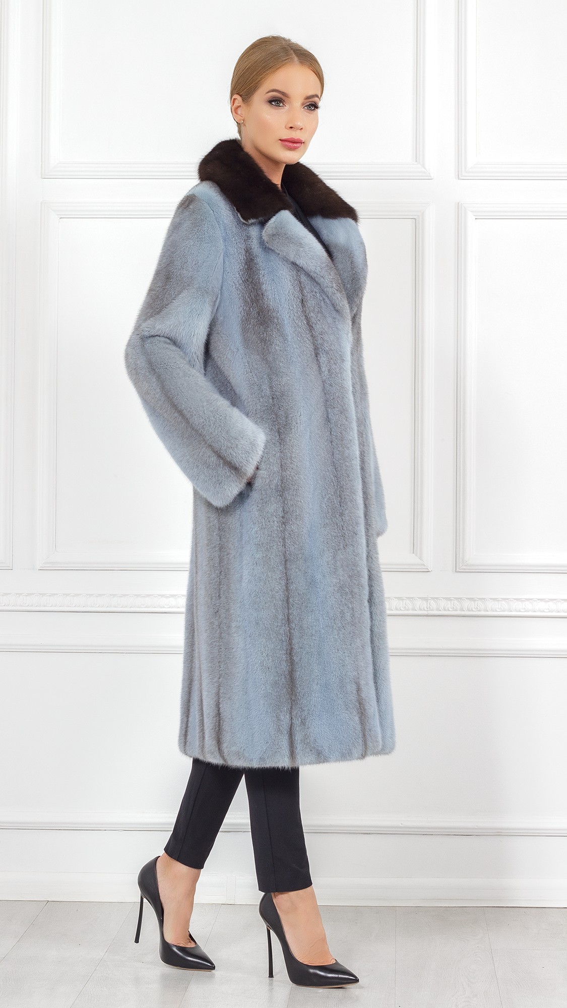 Шуба из меха норки, отделка соболь
