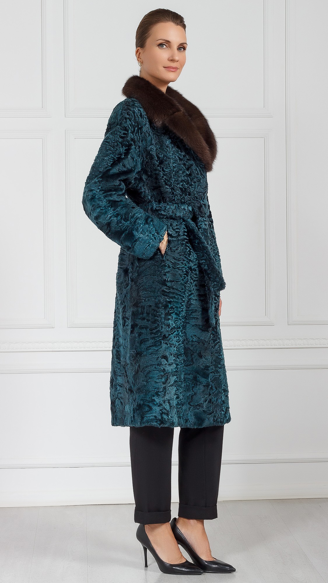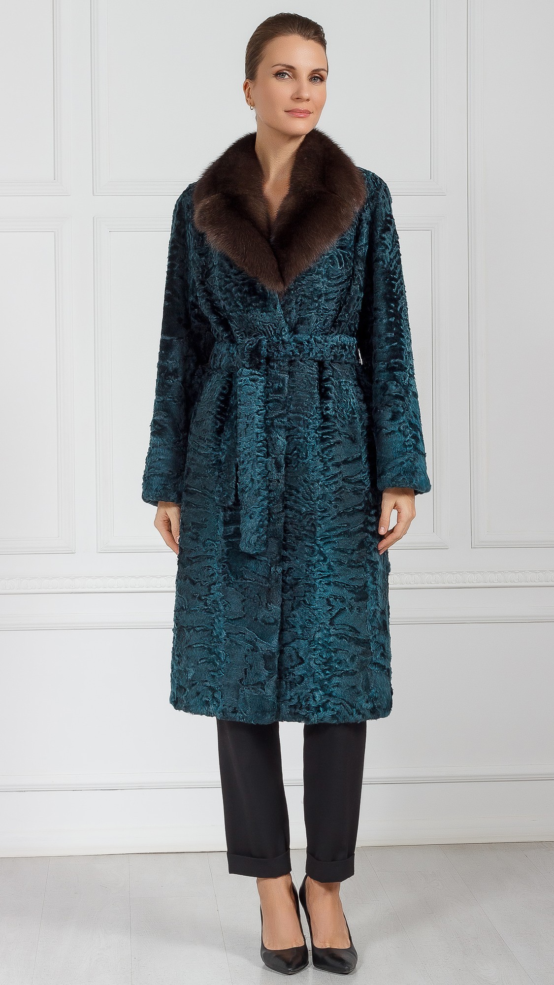 Шуба из свакары, отделка соболь