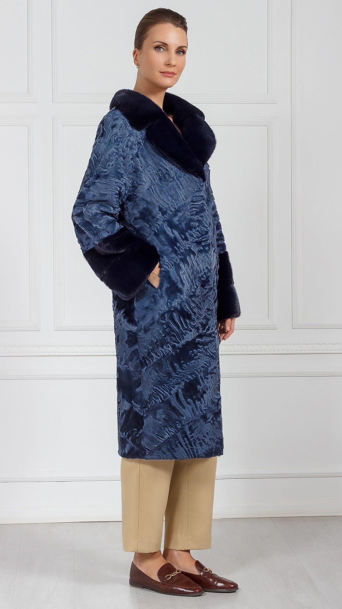 Шуба из свакары, отделка норка