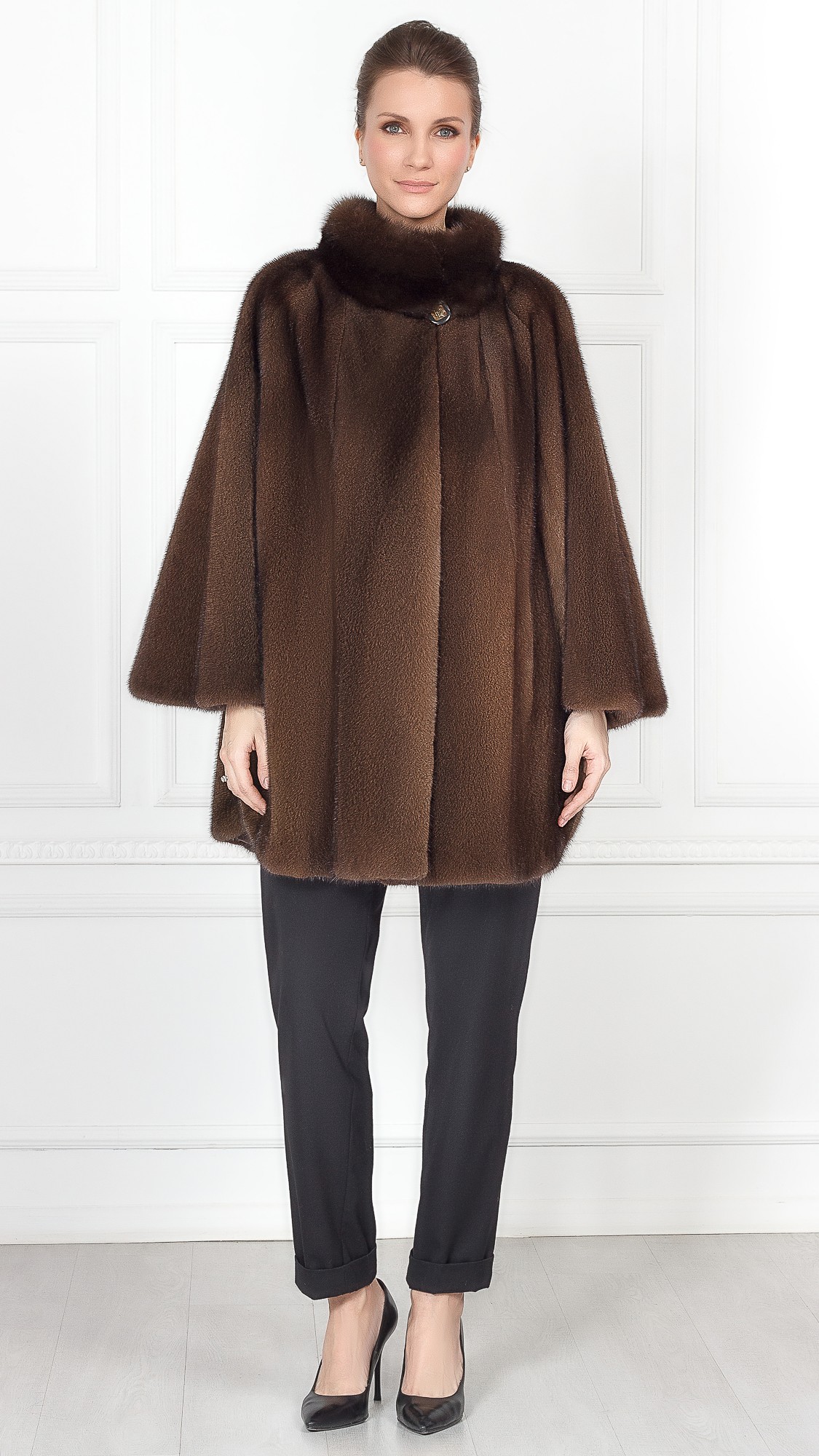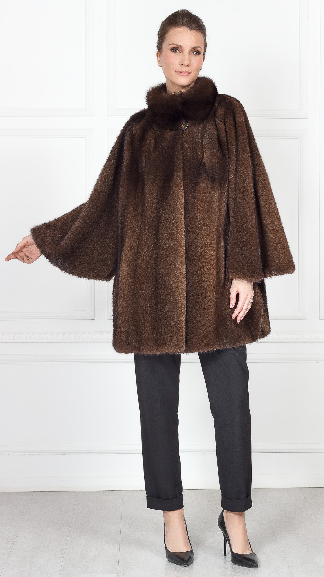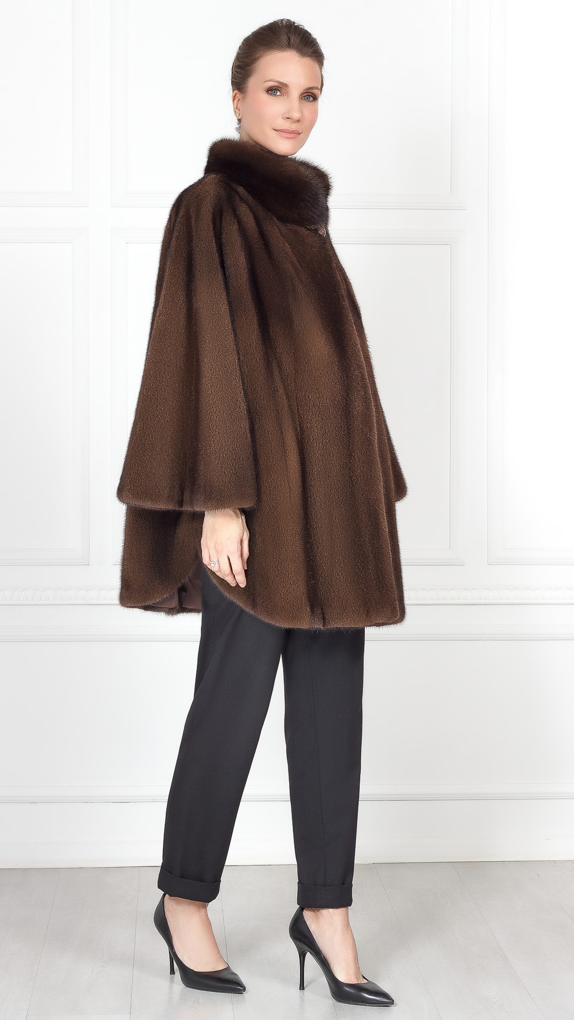 Накидка из меха норки, отделка соболь