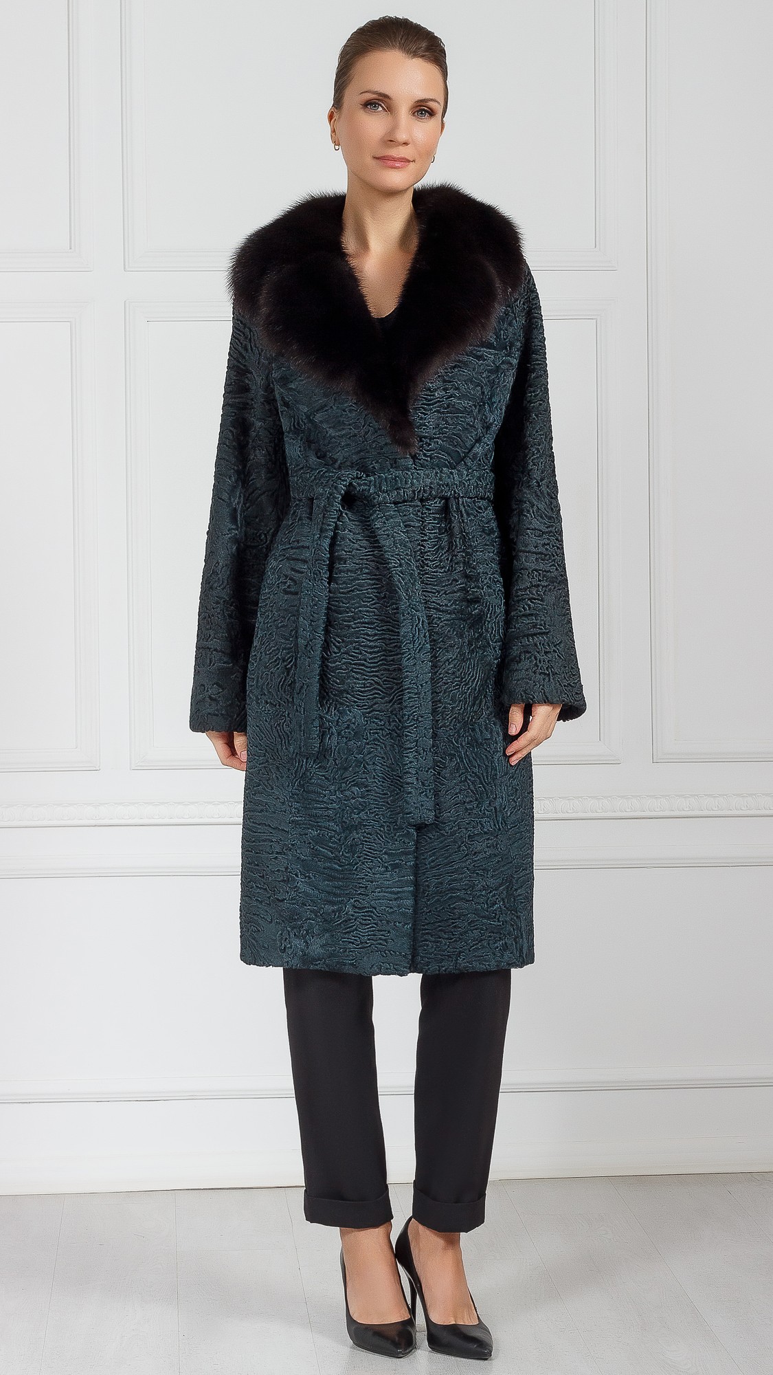 Шуба из свакары, отделка соболь