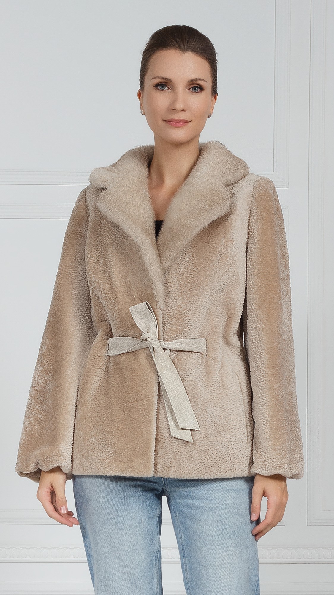 Куртка из овчины, отделка норка