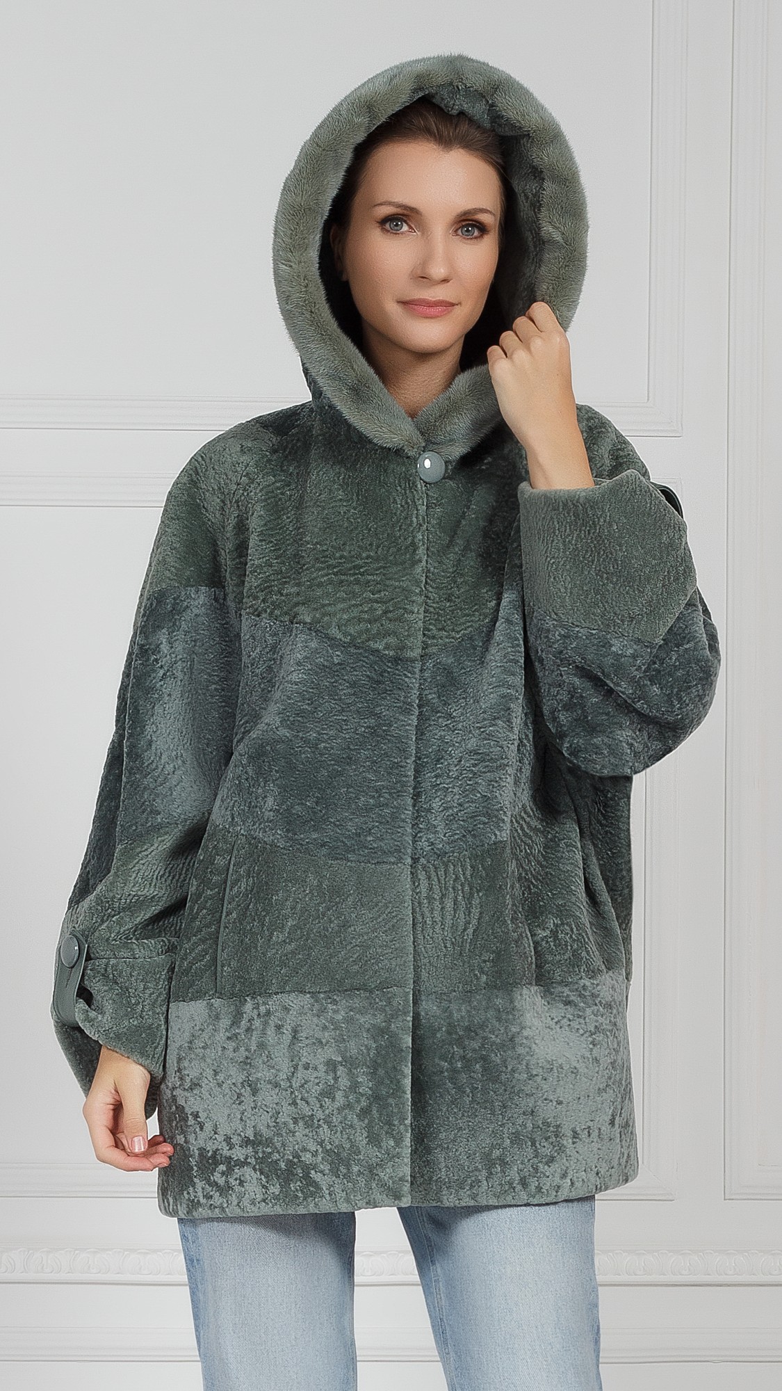 Куртка из овчины, отделка норка
