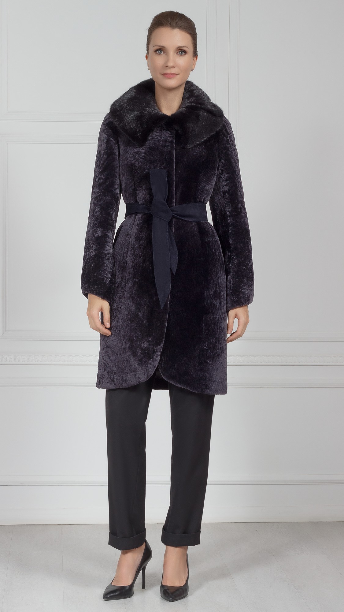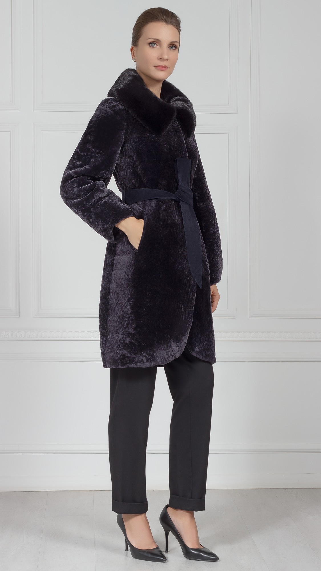 Шуба из овчины, отделка норка
