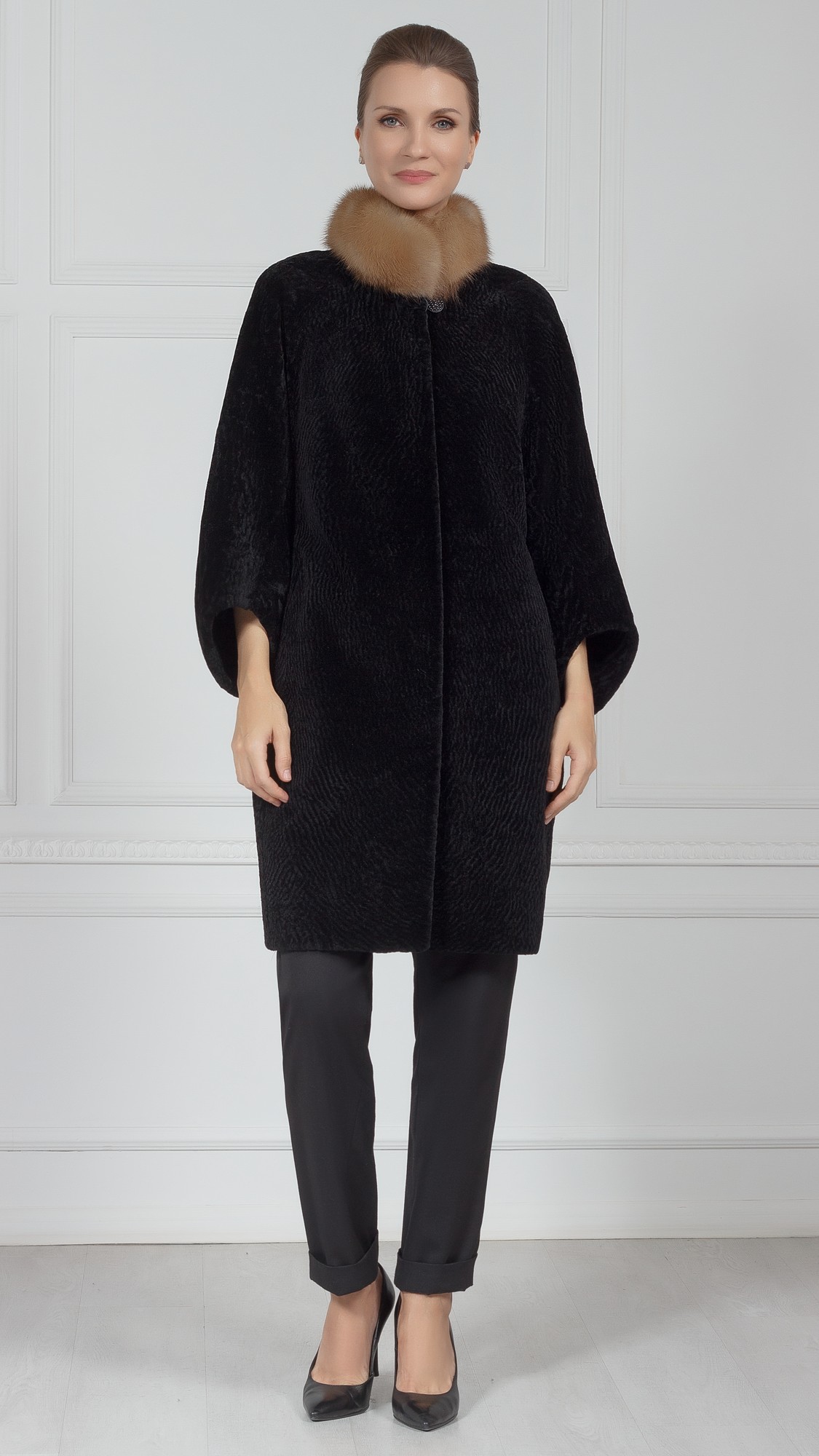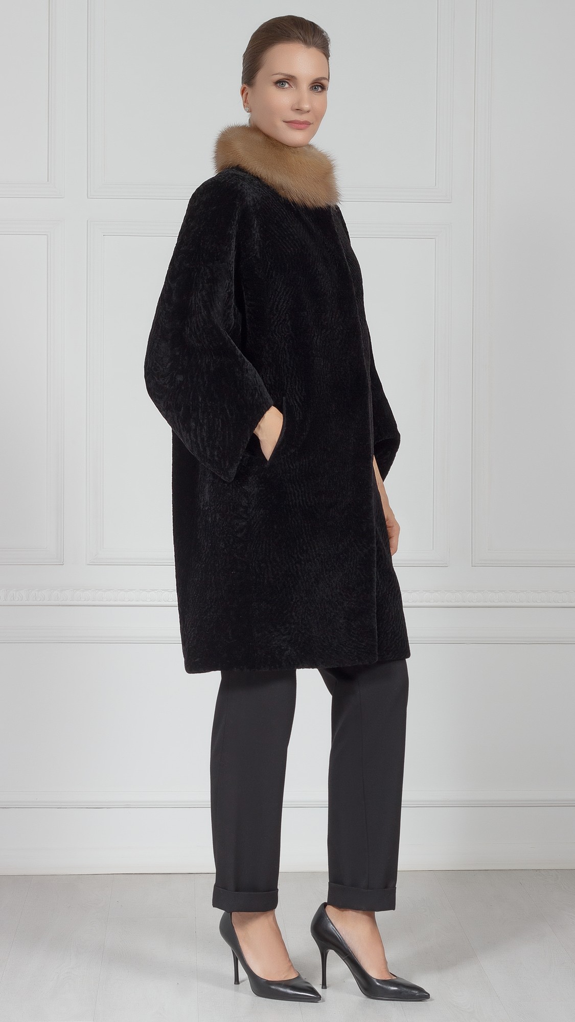 Шуба из овчины, отделка куница