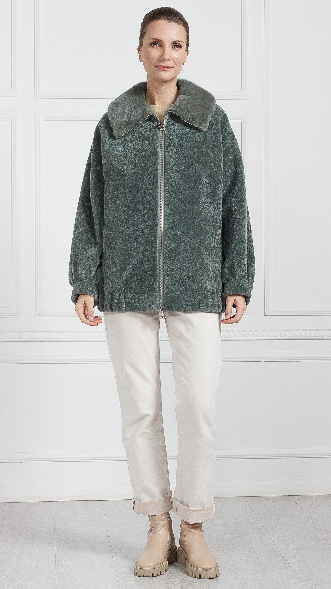 Куртка из овчины, отделка норка