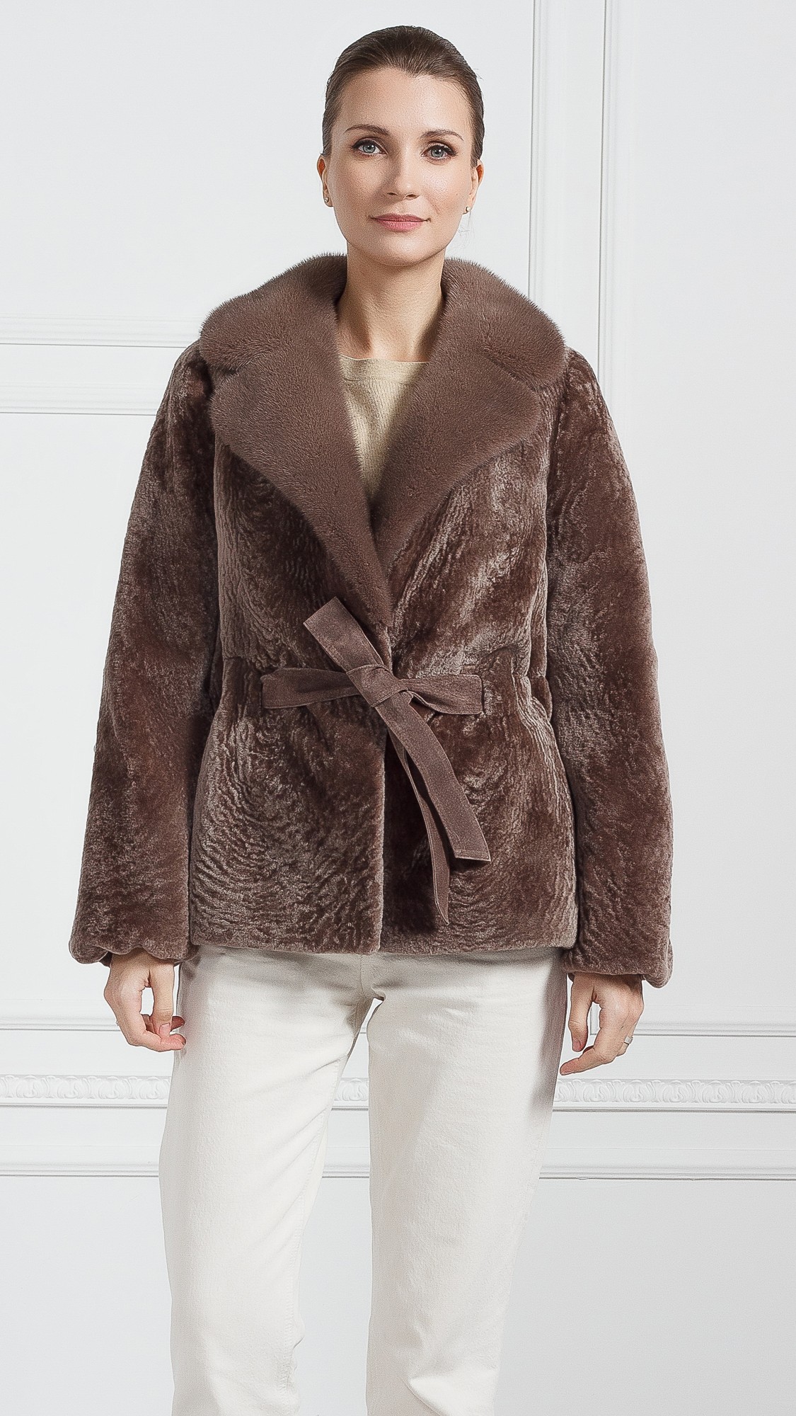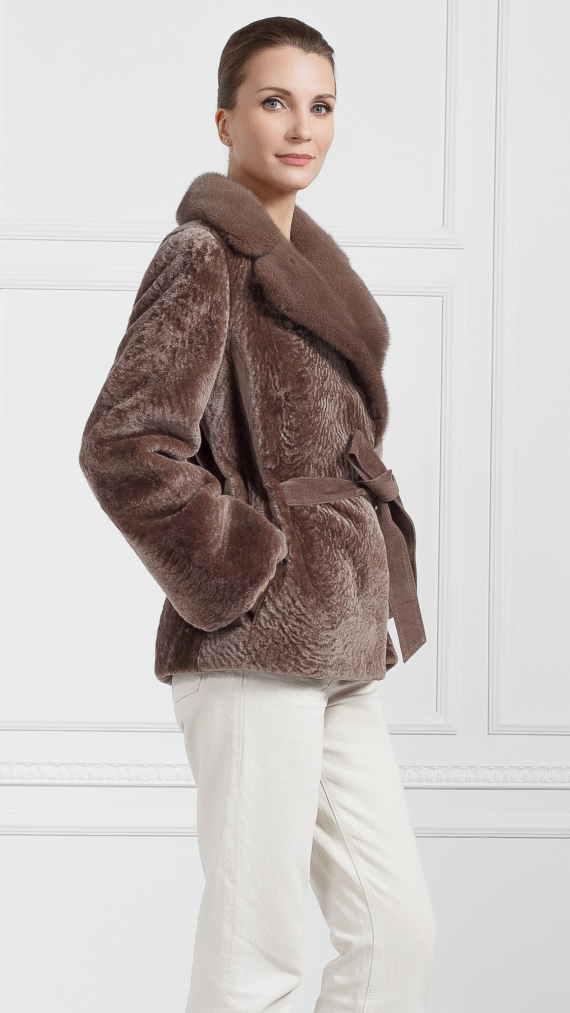 Куртка из овчины, отделка норка