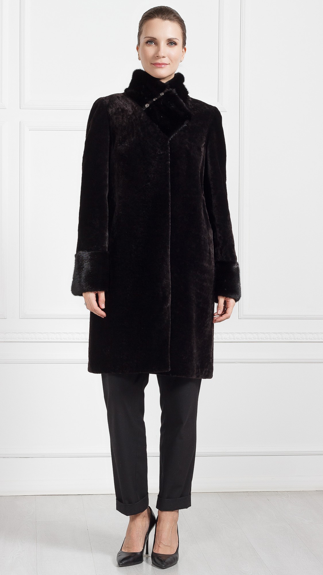 Шуба из овчины, отделка норка