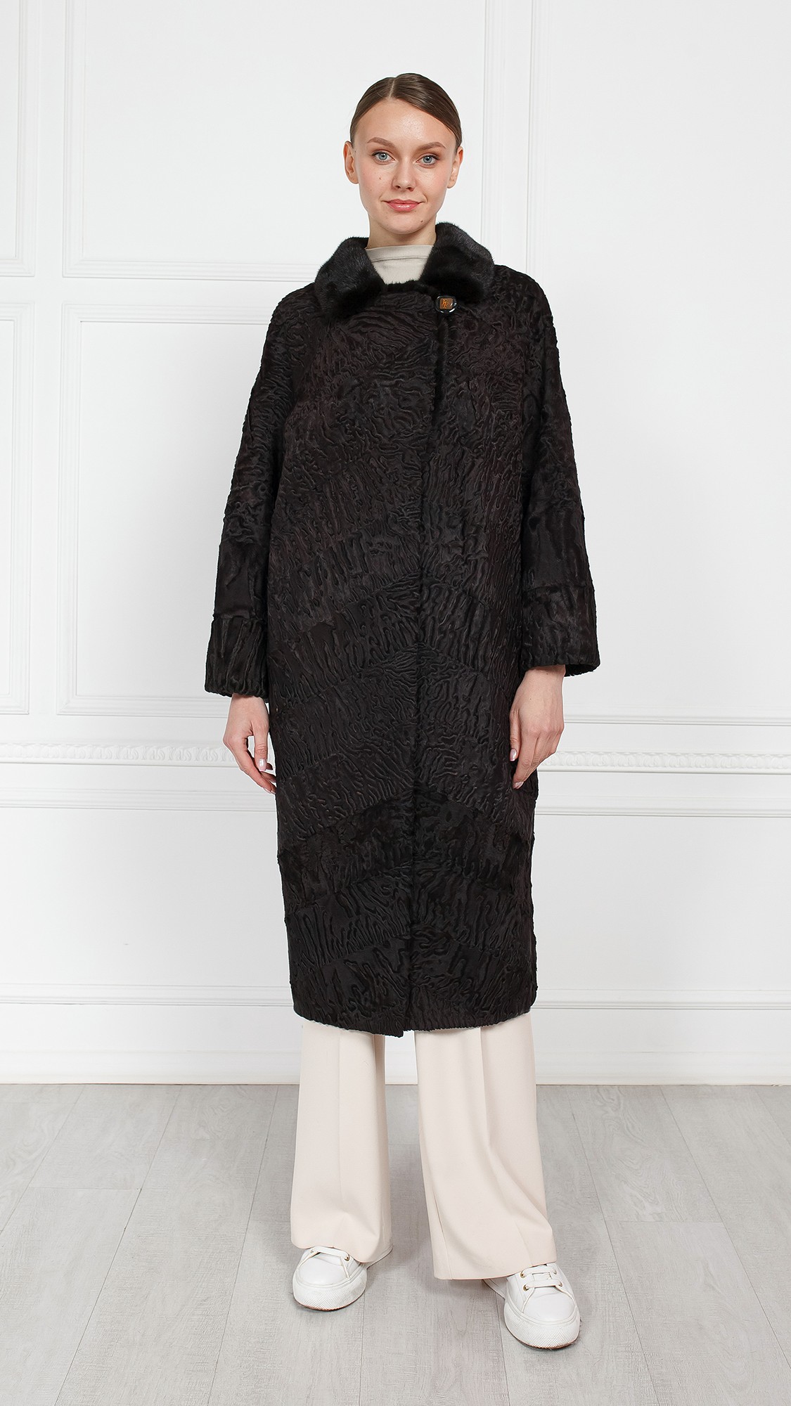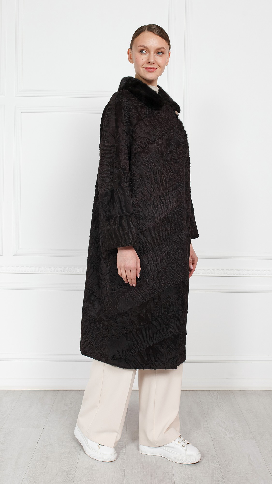 Шуба из свакары, отделка норка
