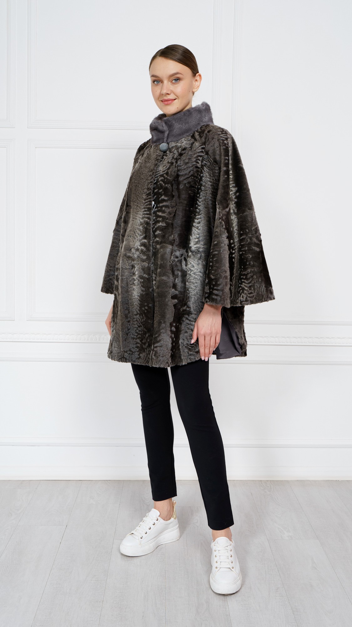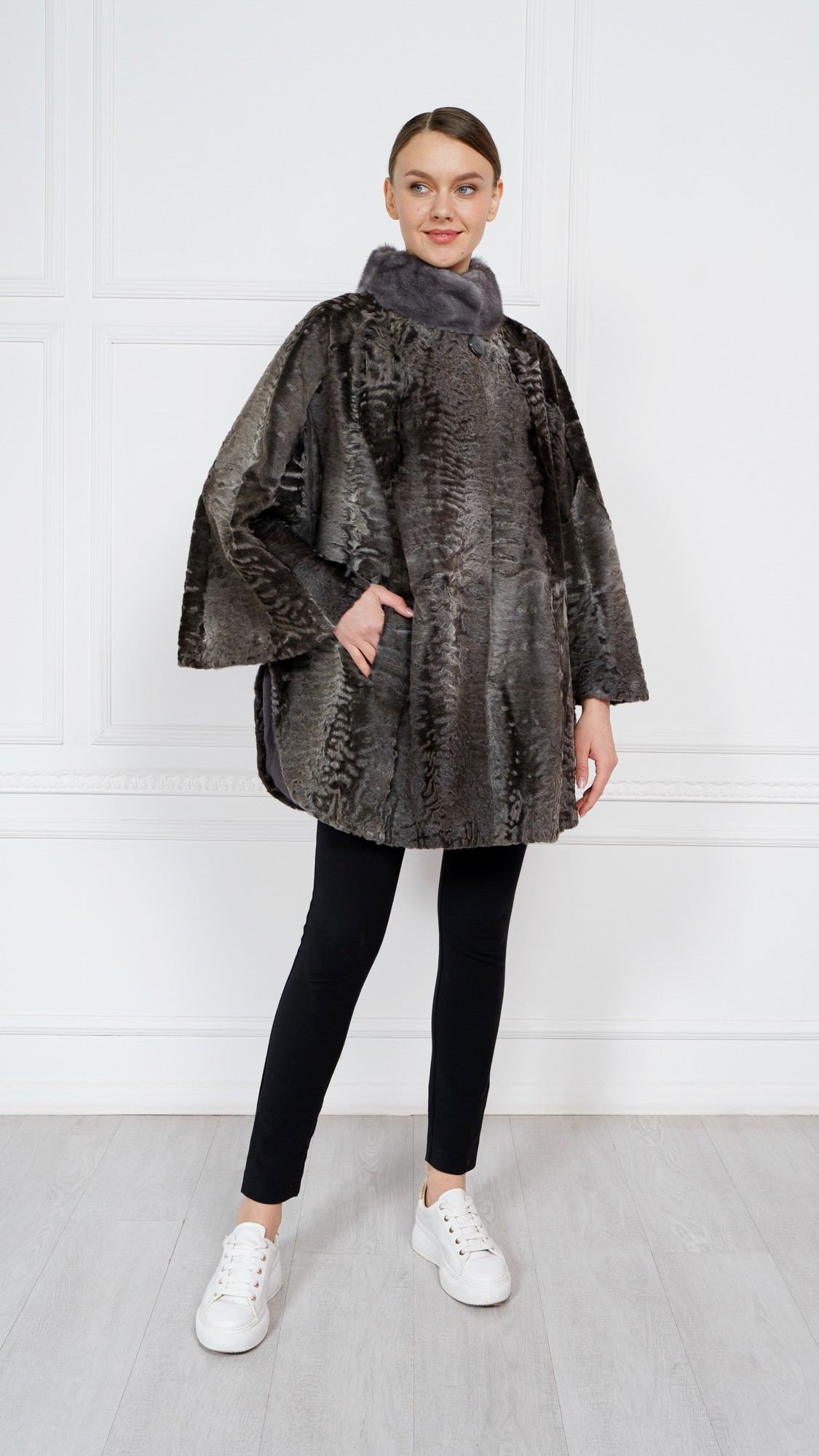 Накидка из свакары, отделка норка